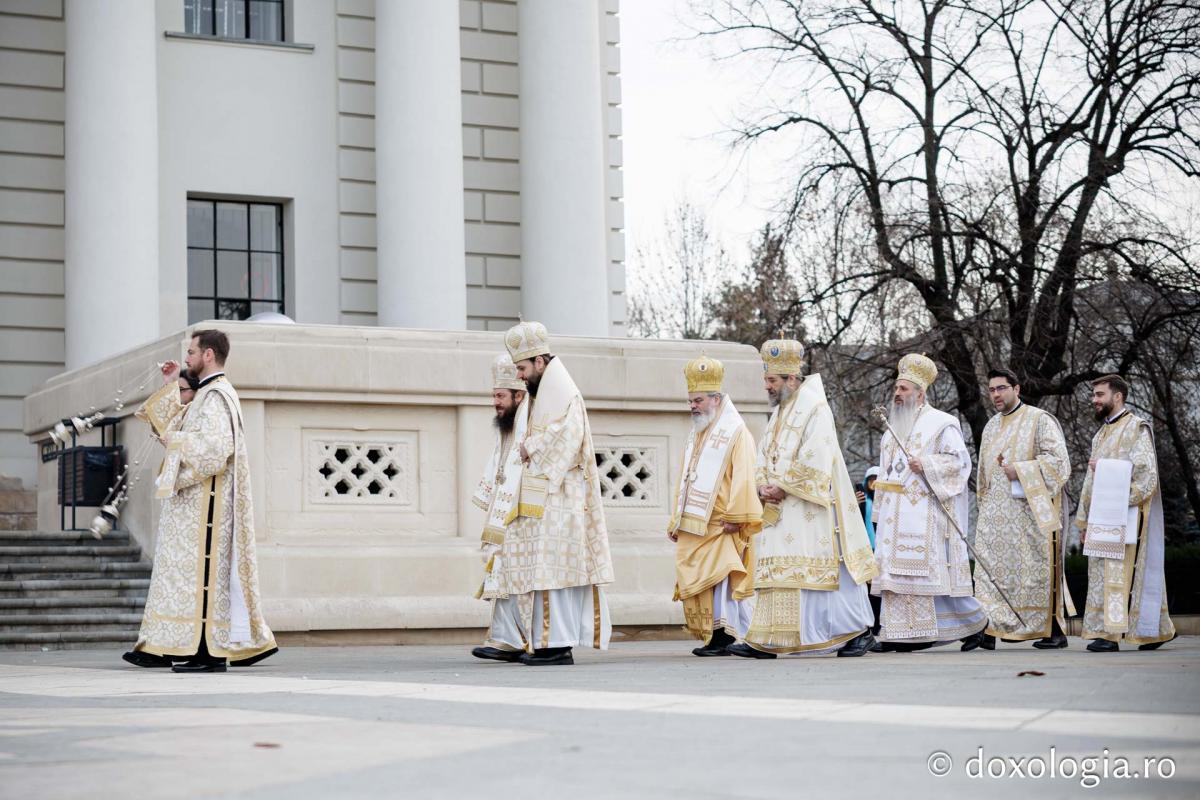 Luni, 2 februarie 2026, Catedrala Mitropolitană din Iași și-a sărbătorit astăzi hramul istoric – Praznicul Întâmpinării Domnului Iisus Hristos. Slujba Sfintei Liturghii a fost oficiată de către Înaltpreasfințitul Părinte Teofan, Mitropolitul Moldovei și Bucovinei, alături de un sobor de ierarhi, preoți și diaconi, în prezența a numeroși credincioși veniți din toată Moldova.
